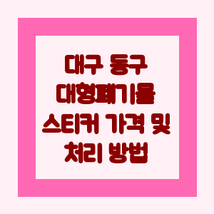 대구 동구에 거주하시는 분들, 집 정리 중 대형폐기물이 발생했다면 어떻게 처리하실 계획이신가요? 대형폐기물 처리에 대해 궁금한 점이 많으시죠? 이 글을 통해 대구 동구의 대형폐기물 스티커 가격과 처리 방법을 자세히 알아보시기 바랍니다.