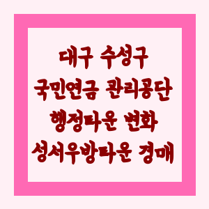 대구 시민 국민연금 관리공단 수성구 지사는 어디에 있을까요? 그리고 이 지역의 행정타운은 어떤 변화를 겪고 있을까요? 또한 성서우방타운 아파트 경매 소식은 어떨까요? 이 모든 궁금증을 해결해 드리겠습니다.